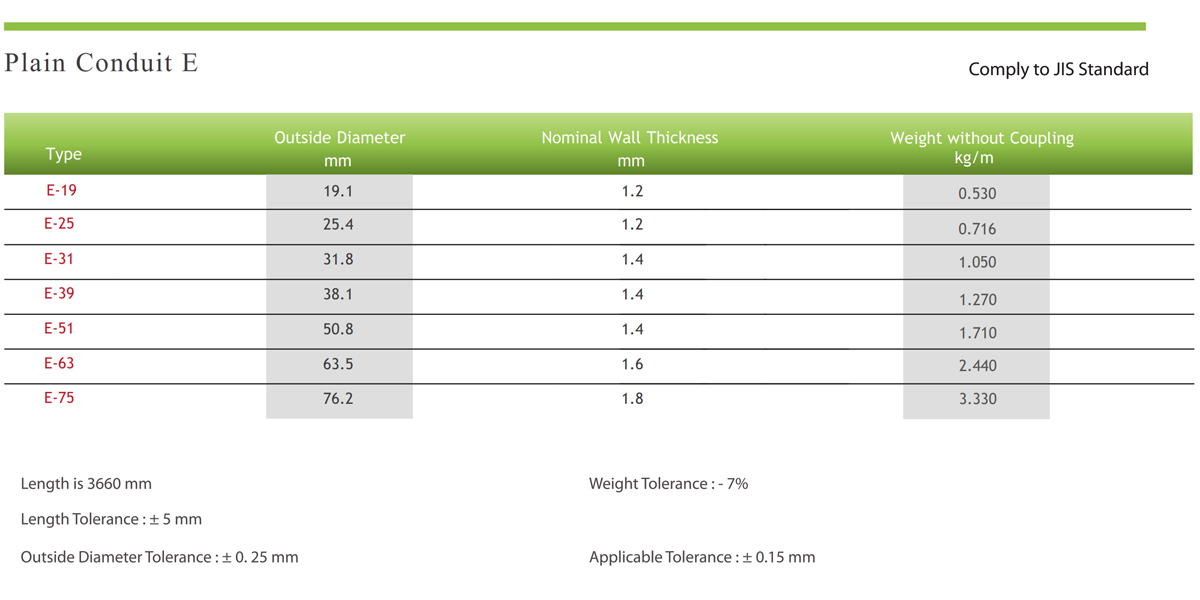 Jenis dan ukuran Pipa Conduit tipe E :