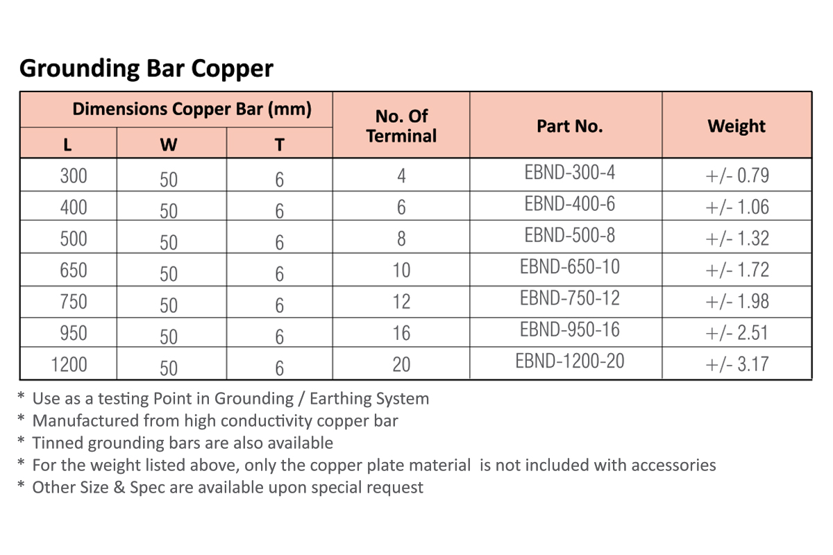 Ground Bar berfungsi sebagai titik pusat untuk koneksi ground. Ground Bar digunakan untuk menghubungkan berbagai konduktor dan komponen ke titik grounding utama.